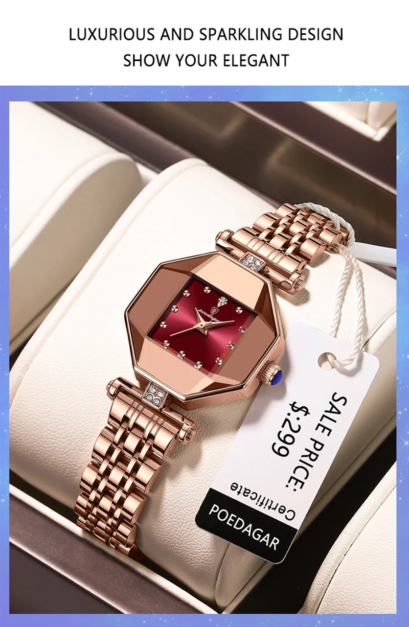 POEDAGAR Luxury Green Women Watch Quartz Creative Square Small Dial Waterproof Ladies Watches Rose Gold Steel Strap Clock Female