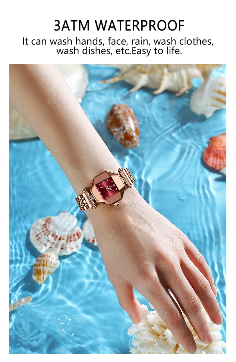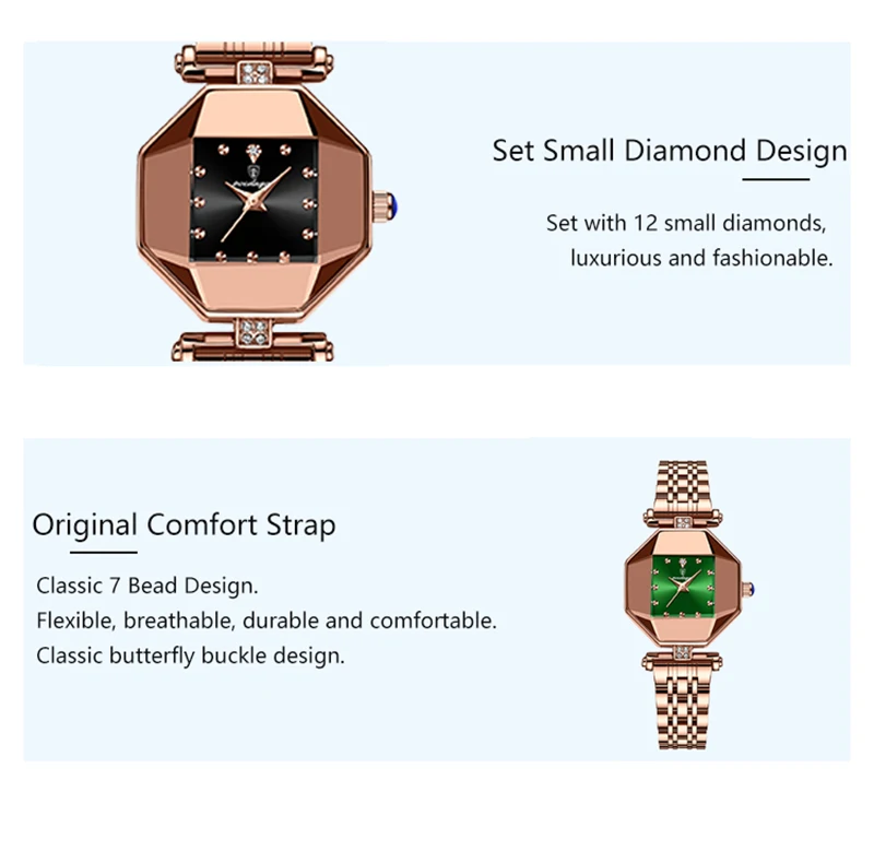 + Free ShippingPOEDAGAR Luxury Green Women Watch Quartz Creative Square Small Dial Waterproof Ladies Watches Rose Gold Steel Strap Clock Female