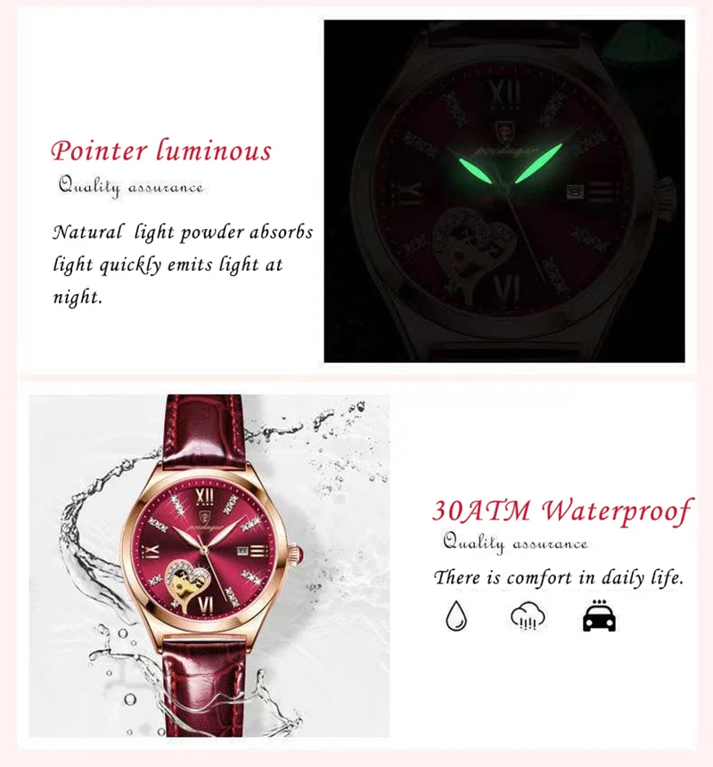POEDAGAR Luxury Luminous Women Watch Top Brand Waterproof Leather Strap Quartz Ladies Watch Small Dial Diamond Woman Clock Date
