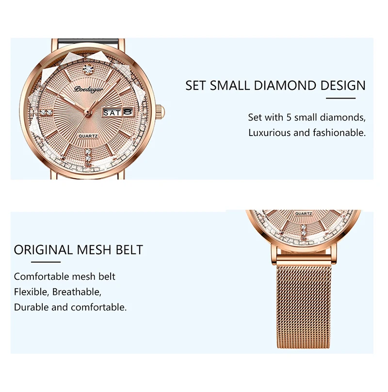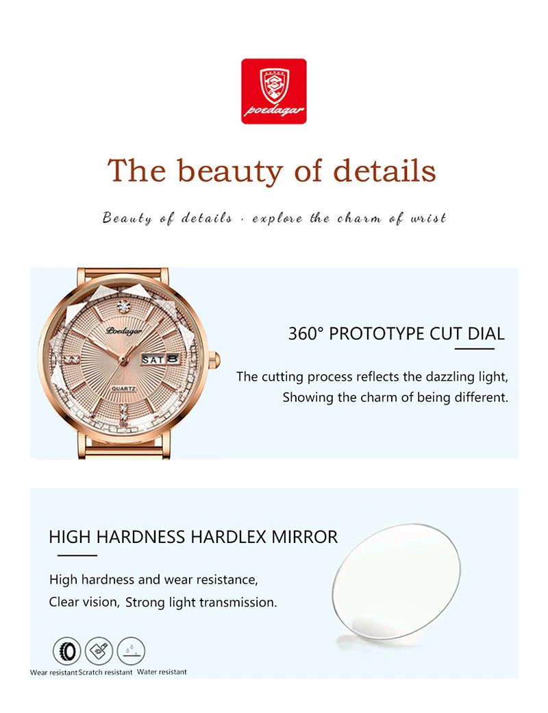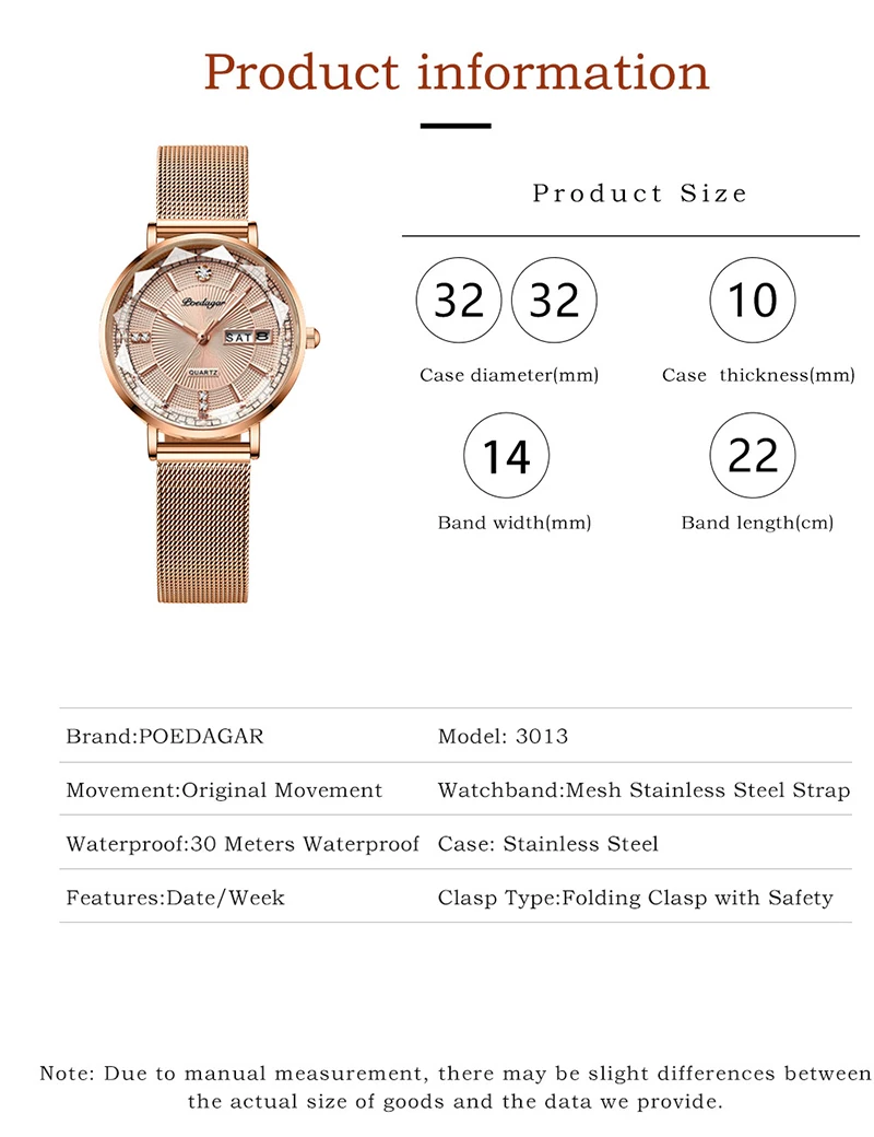 + Free ShippingPOEDAGAR New Arrival Women Brand Watch Fashion Diamond Dial Luxury Luminous Stainless Steel Ladies Quartz Watches Rose Gold 2023