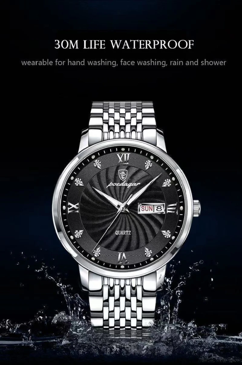 POEDAGAR Ultra Thin Watches For Men Luxury Brand Waterproof Sports Quartz Wrist Watch Business Stainless Steel Luminous Man 2023